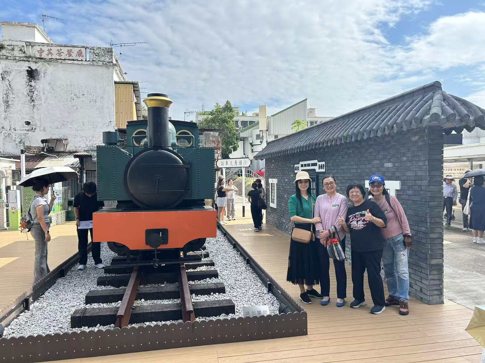 午後,各團友爭相到酒樓的小陽台,從這兒可清晰眺望近在咫尺卻不能走過去的中英街,大家都打卡到此一遊。走出酒樓外的花園廣場,見到沙頭角火車站舊址,如今展示了蒸氣火車頭及有關展板解說,原來當年於一九二○年代,乘此火車由粉嶺至沙頭角全程六個站,車票是六亳子哩。