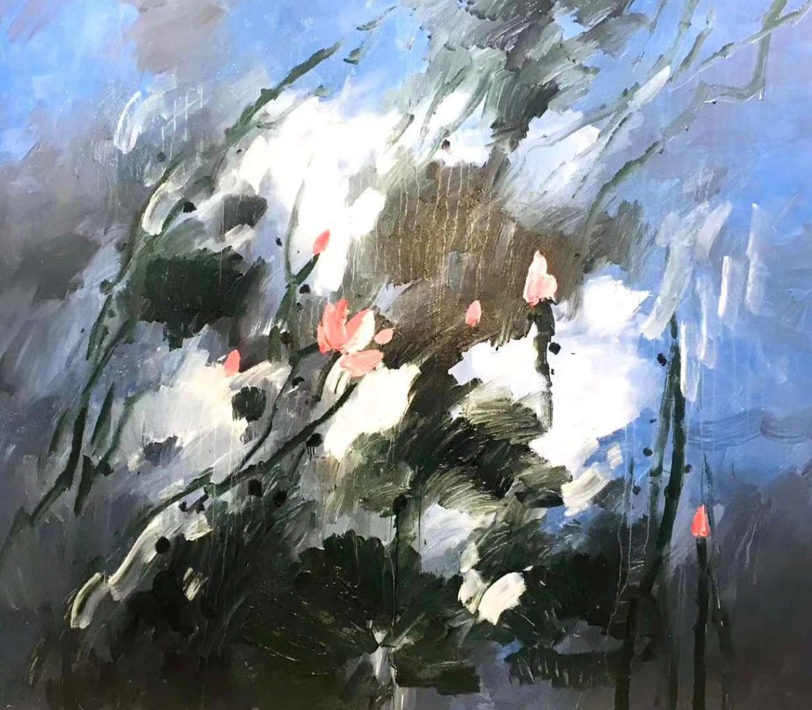 今天的夢如印象,已不是一個單一的詩人,在詩歌創作上,除了有感而發的心靈之詩,她又找到一種寄托情思的載體。她常去觀摩畫展,閱覽以及賞析了許多畫作。每個畫家都有獨特的故事和色彩語言,她以詩人之敏感去洞察畫作的意象、技法、情感。對詩人來說,詩心澎湃,境隨心走,無論你讀到的是她看畫有感的短文,或賞畫題詩的短句,都是她借物詠志之作。這些作品已屬二次創作。詩人和畫家在共同的畫面裏,感受著琴瑟和鳴的妙趣。正如蘇軾的「橫看成嶺側成峰,遠近高低各不同。」無論如何,在詩人眼裏,一加一肯定大於二。每一首題詩,就是「看山不是山」的,不同維度的審美。