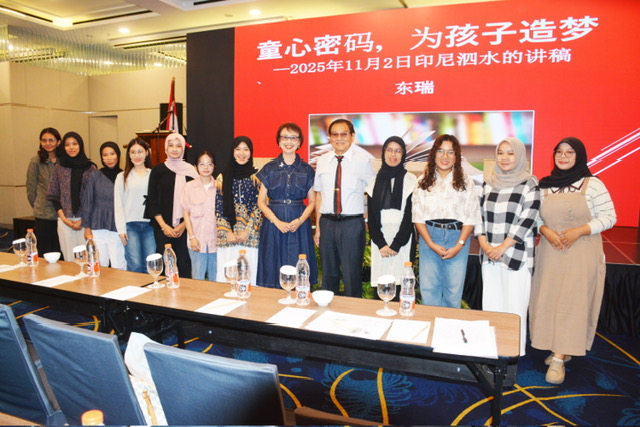 我們在雅加達逗留了五夜,十一月一日飛泗水,二日在東盛禮頓酒店舉辦東瑞演講會暨葉竹新書發布會。我的講題「童心密碼,為孩子造夢」,講稿寫了九頁,葉竹是東區文友協會主席,發布兩本新書是《葉竹舊詩詞新寫》及兒童詩集《小成雙語兒童詩》。廿一樓的會場非常好,座椅的設計都是參照國際標準,來聽的據報非常多,有印尼哈夷鄭和基金會創辦人哈夷柳民源,千島日報社社長陳平和、秘書邵秀明,印尼東文區友協會理事和會員,泗水國立大學孔子學院學生,東爪哇華文教育統籌機構主席蘇先源,以及泗水新中三語學校、泗水小太陽三語學校、泗水開明三語學校、泗水中中華語學習中心、印華中文補習學校、東爪哇書畫協會、泗水永春漢語中心、泗水誠信漢語學習中心的領導、老師和學生約一百餘人出席,最感動的是泗水國立大學孔子學院戴著頭巾的伊斯蘭女大學生約有十幾二十人都在座。兒童文學,是我在印尼無數次講座的首次講的課題,也是我的講座第一次有印尼原住民出席。在激動心情的激勵下,也格外起勁地希望自己能講得好一些。我圍繞的核心是兒童文學不是小兒科,兒童文學可是一個國家的象徵和驕傲(如丹麥)。兒童文學因為物件特殊而有難度;要了解兒童的特別心理;我還講到我的一百五十二種書裏,兒童文學就占了三十七種。為了獎勵互動、活躍氣氛,在陳平和社長、謝月雲、里正祥老師發表感言後,還有多位聽眾提出問題或回答問題,氣氛熱烈。非常驚喜的是擔任司儀的女生非常年輕,是中中華語學習中心兩位保送生陳小美和吳瑞真,出色的司儀詞和主持藝術,成為演講會和發布會一道美麗的亮色。而酒店老闆周宏禮借出地方,宴請大家午餐,為酒店業和文學的美好結合開創了榜樣和新風。葉竹新書的發布贈送儀式也進行得很正式,無疑對新詩的發展是一次有力的推動。
