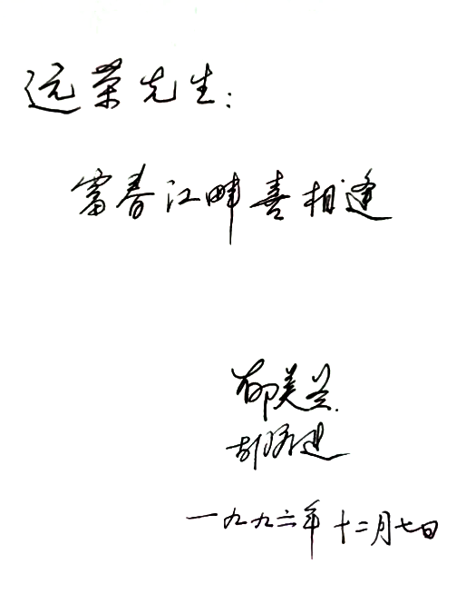 胡序建、郁美蘭夫婦題詞贈作者。
