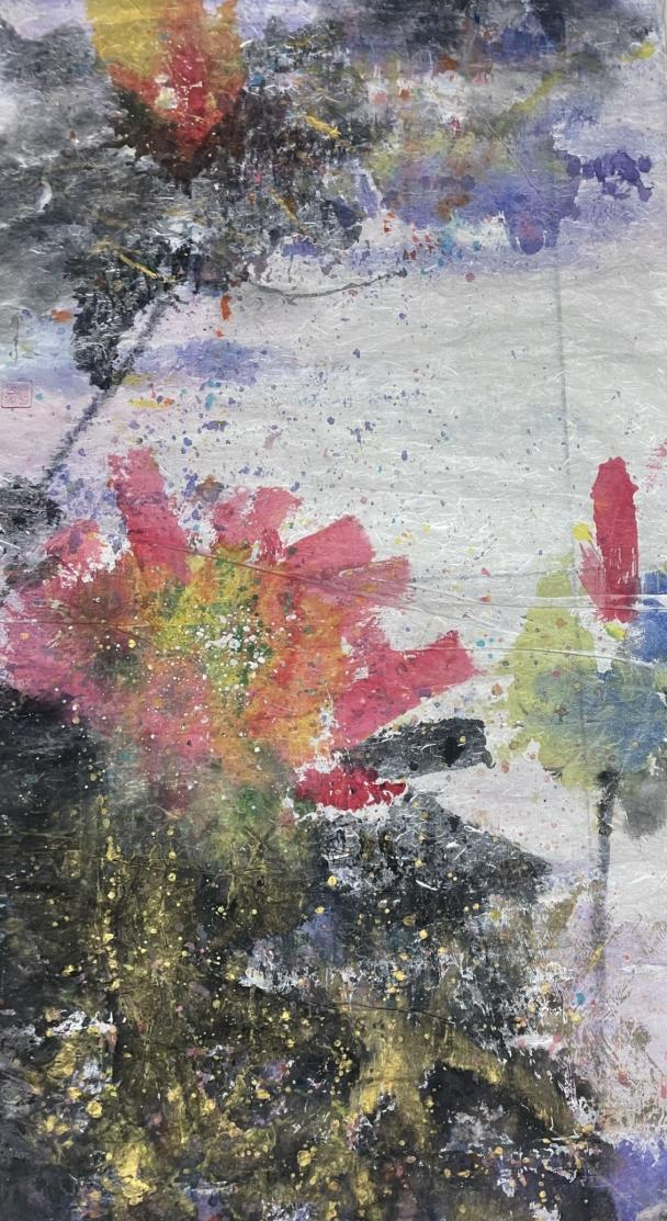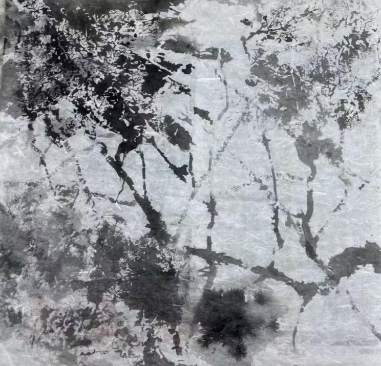 身為詩人的印象,其畫作最動人之處,莫過於詩魂與畫境的如影隨形、渾然天成。詩與畫本就同源,皆以意境為上,印象以詩人的敏銳觸覺,捕捉世間萬象的精微之處,以詩人的浪漫情懷,賦予畫面朦朧詩意,再以畫家的美學品味,將這份精微與浪漫落於筆墨、顯於材質。她的藝術才思奔湧,不止於技法的不斷革新,從水墨的淋漓揮灑到拓印的質樸拙趣,從色彩的交融碰撞到亞克力的光影變幻,每一種嘗試都緊扣主題、服務意境;更在於思想的流動延伸,讓每一幅作品都成為心靈的獨白、情感的寄託。其畫風婉約而不柔弱,朦朧而不空洞,婉約是女詩人的細膩情愫,朦朧是東方美學的留白智慧,這份獨特特質讓她的作品擁有「不落言詮」的藝術魅力——畫內是筆墨材質構建的具象世界,畫外是詩心延伸的廣袤精神空間,觀者所見,不止於墨色、色彩與肌理,更能在畫面之外,尋得屬於自己的心境共鳴與無盡遐想。